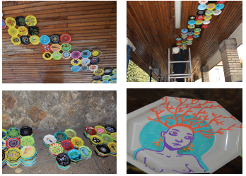 De nombreux ateliers d’ergothérapie et d’arthérapie des secteurs 94G11, 94G14, 94G10, 92G13, 94G13, 94G17, 94G15 en intra et extrahospitalier ainsi que l’atelier d’animation de la cafétéria ont réalisé, tout au long de l’année, un projet d’assiettes en plastique, décorées à la peinture ou aux feutres acryliques. Collées ensuite par panneaux de 9, elles ont été accrochées dès le jeudi 13 octobre au plafond des coursives qui longent la cour centrale de Paul Guiraud Villejuif. Ce projet s’inscrit dans un travail individuel pour venir ensuite faire « oeuvre collective » pour apporter un peu plus de couleurs à l’intérieur de notre établissement. Alors n’oublions pas de marcher la « tête en l’air », parfois ça vaut le détour !!!